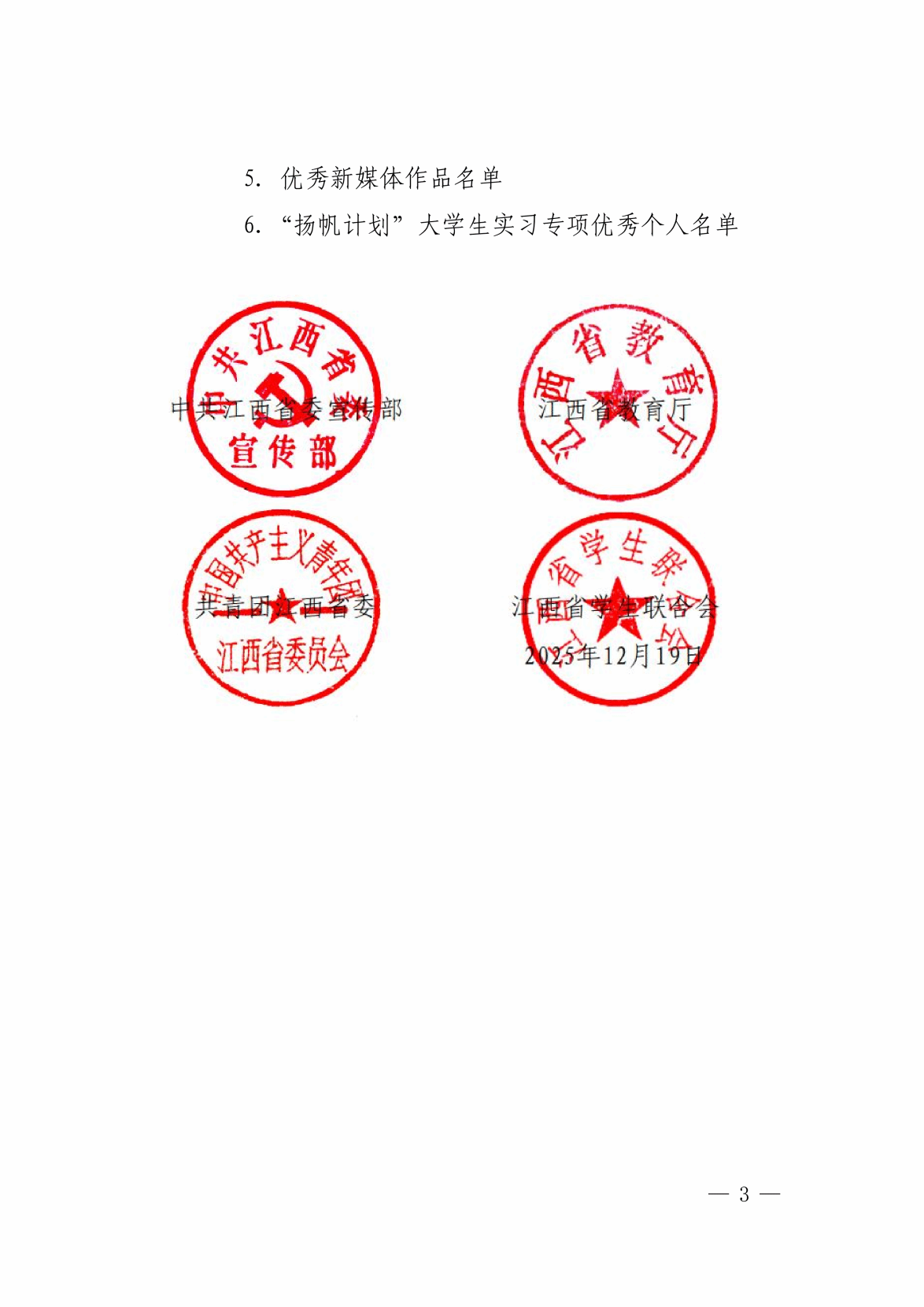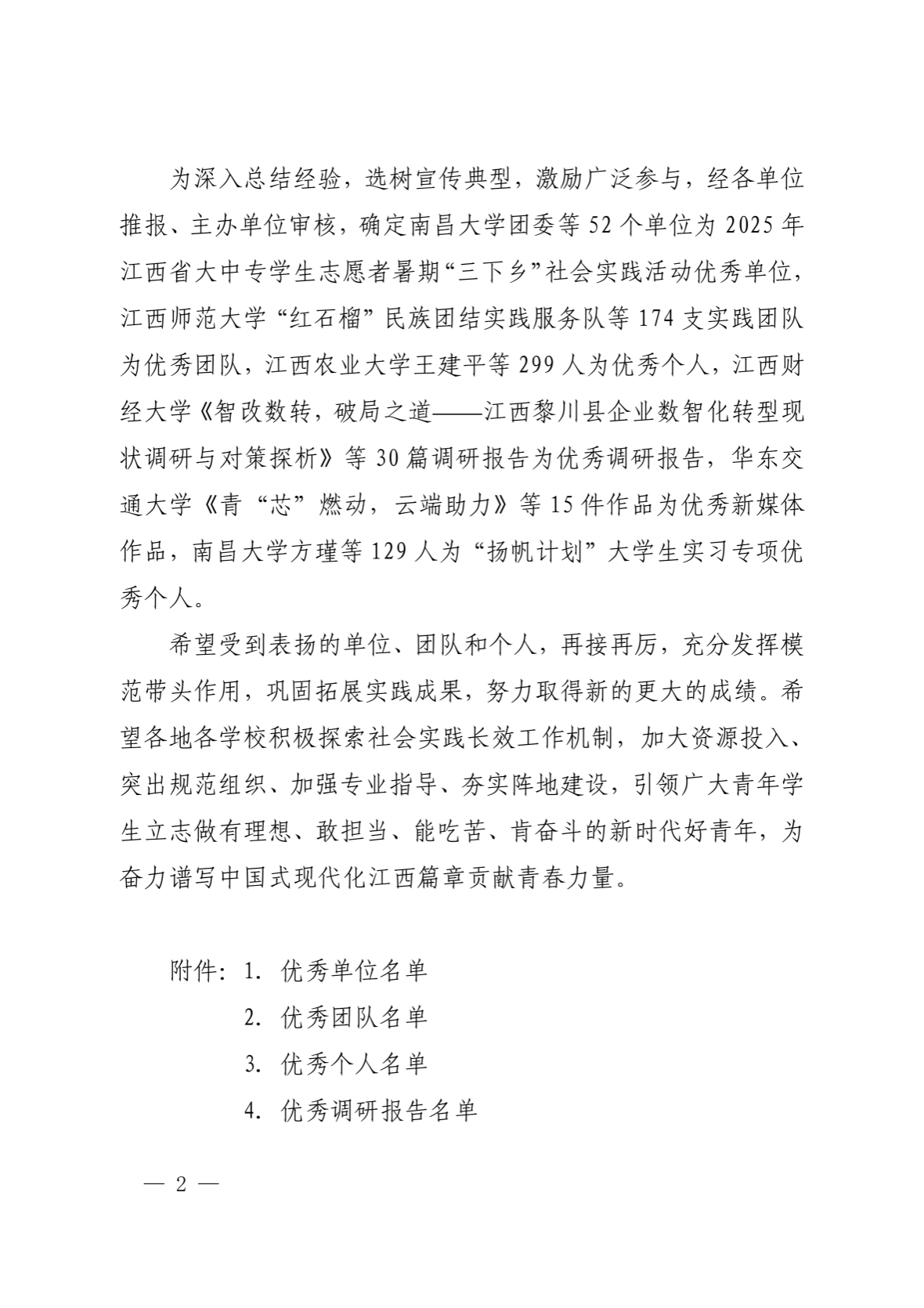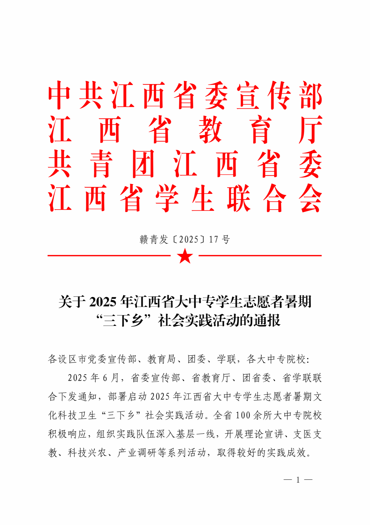 近日,中共江西省委宣传部、江西省教育厅、共青团江西省委、江西省学生联合会等四部门联合下发了《关于2025年江西省大中专学生志愿者暑期“三下乡”社会实践活动的通报》。学校“青春筑梦”社会实践服务队获优秀团队,学校教师李爽爽、人工智能学院24大专卓越领航01班学生周鹏宇获优秀个人。学校团委获优秀单位荣誉称号,这也是学校自2023年起连续三年获评优秀单位荣誉称号。
