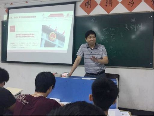 在讲到革命斗争经过的时候,陈院长在黑板上随即手绘了秋收起义部队转移井冈山建立革命根据地、南昌起义南下部队转战闽粤赣湘并会师井冈山的路线图,形象生动,师生互动频繁,课堂氛围热烈。